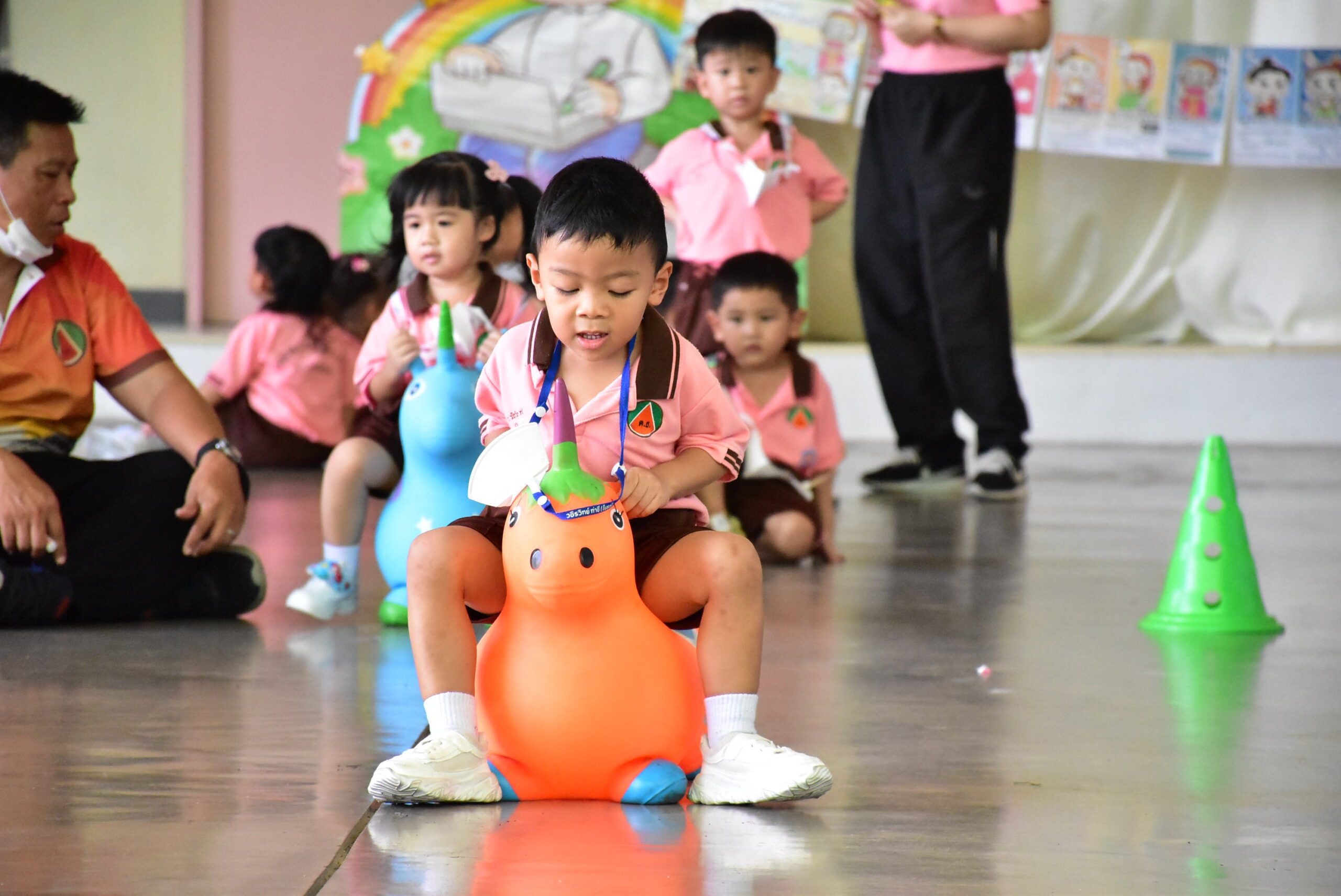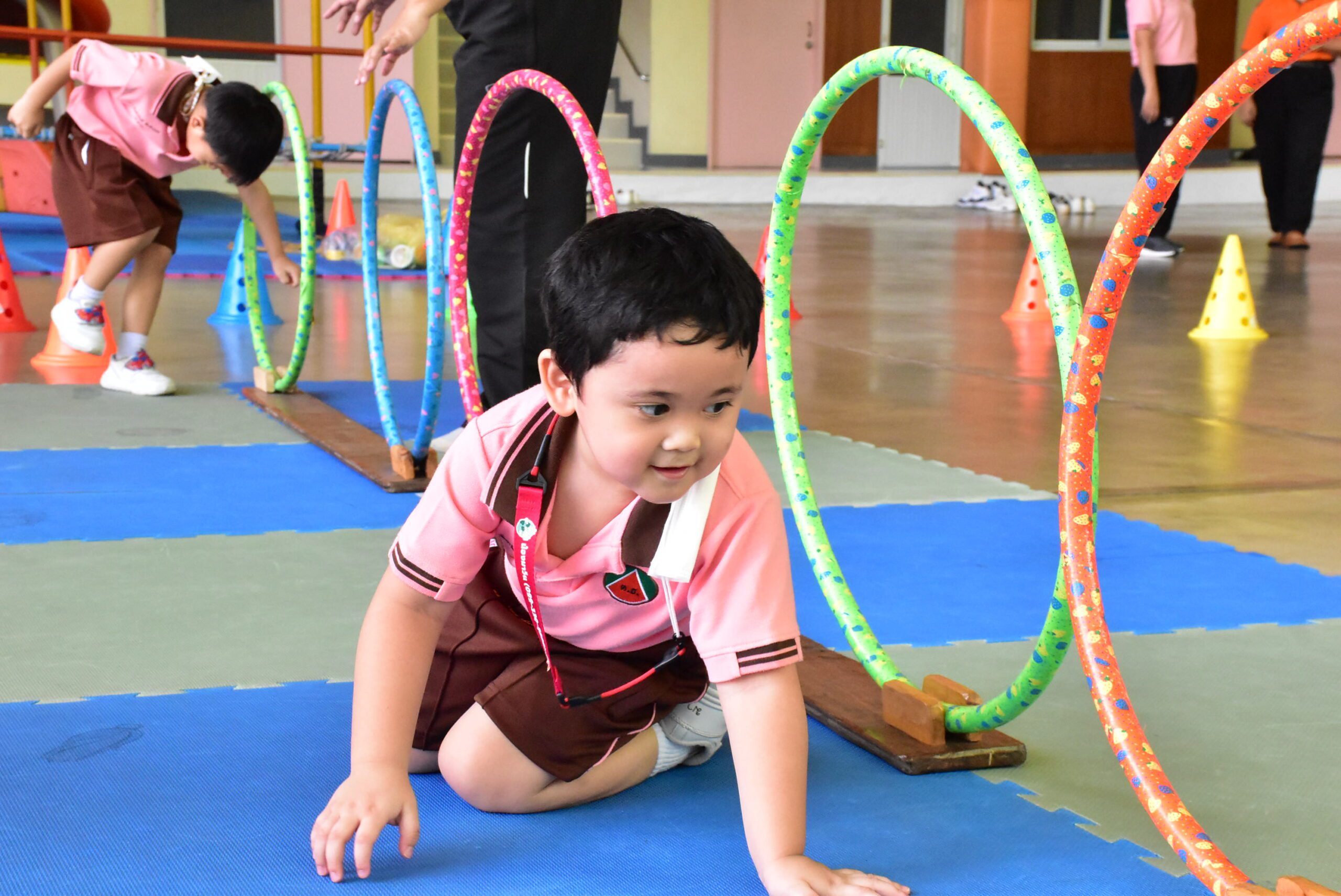 • ห้องที่เด็ก ๆ ชอบมากที่สุดในโรงเรียน เป็นห้องที่ใช้สำหรับกระตุ้นพัฒนาการทั้งกล้ามเนื้อมัดเล็กและกล้ามเนื้อมัดใหญ่ บุนุ่มด้วยเบาะทั้งห้องเพื่อป้องกันการกระแทก มีบาร์สำหรับการทรงตัว มีเบาะบอลที่เลือกใช้ลูกบอลที่ผลิตจากวัสดุปลอดสารพิษเพื่อสุขภาพที่ดีของนักเรียน
