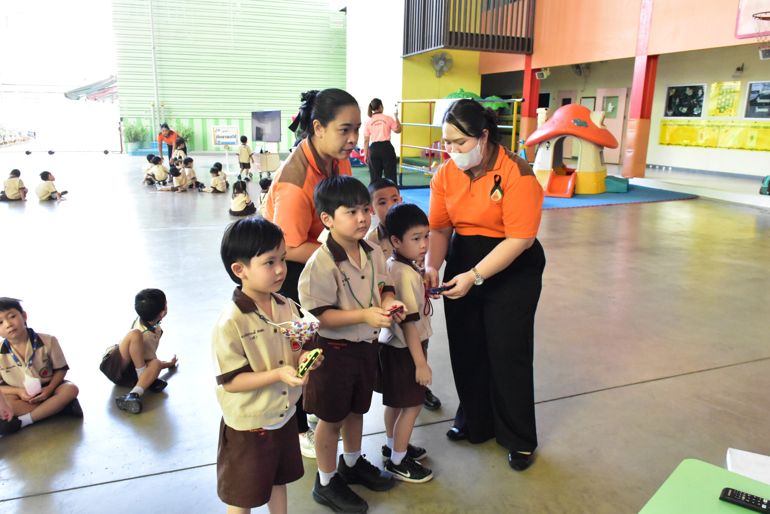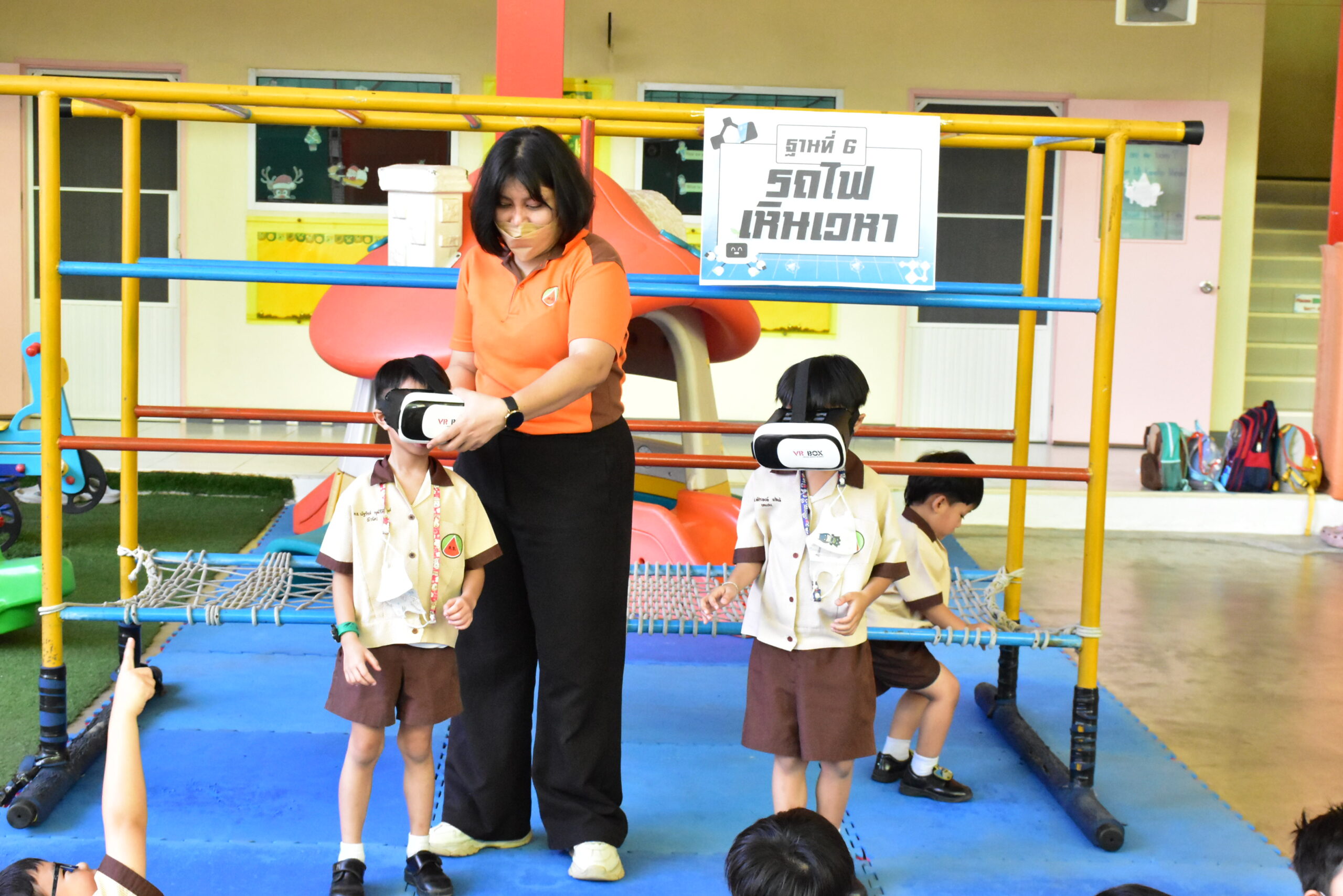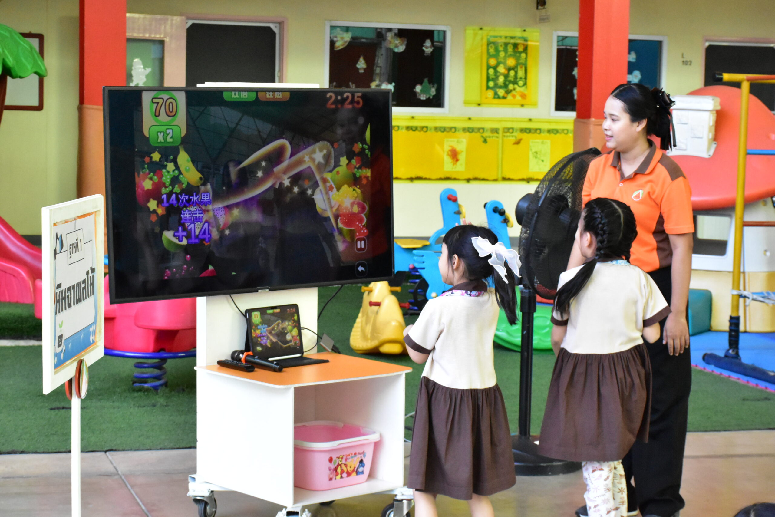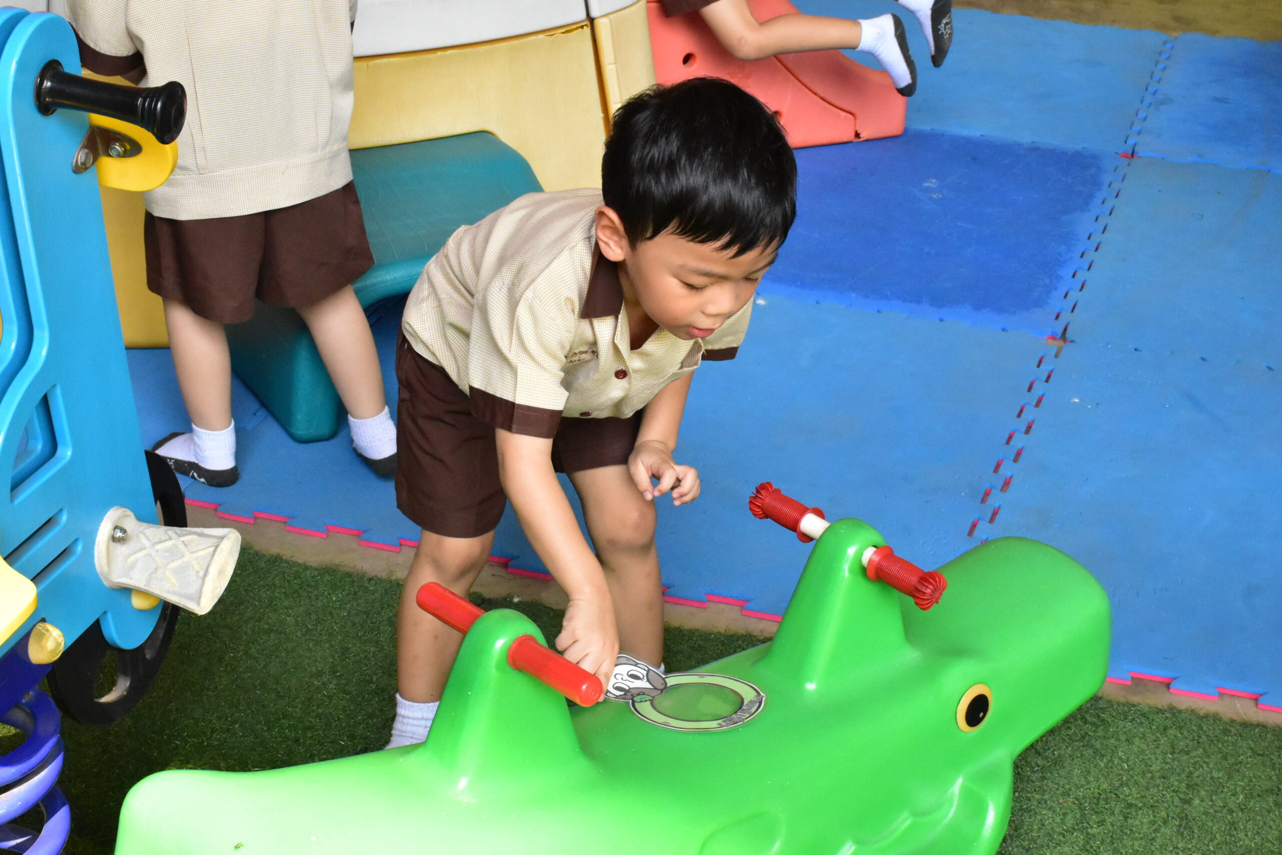 • เปิดโลกแห่งความสนุกและความสุข สนามเด็กเล่นซึ่งตั้งอยู่ในที่ร่ม มีพื้นที่กว้างขวาง สีสันสวยงาม มีเครื่องเล่นที่กระตุ้นและส่งเสริมพัฒนาการของเด็กๆ พร้อมคุณครูดูแลอย่างใกล้ชิดตลอดเวลาที่เด็กๆ วิ่งเล่นกันอยู่ในสนามเด็กเล่น โดยเครื่องเล่นของโรงเรียนทำจากพลาสติกที่ได้มาตรฐานความปลอดภัย ปราศจากสีและสารเคมีที่เป็นอันตรายต่อเด็ก จึงทำให้ผู้ปกครองวางใจได้ในความปลอดภัย เด็กๆ จะได้มีช่วงเวลาแห่งความสุขหลังจากได้เรียนรู้เรื่องราวต่างๆ ในห้องเรียน