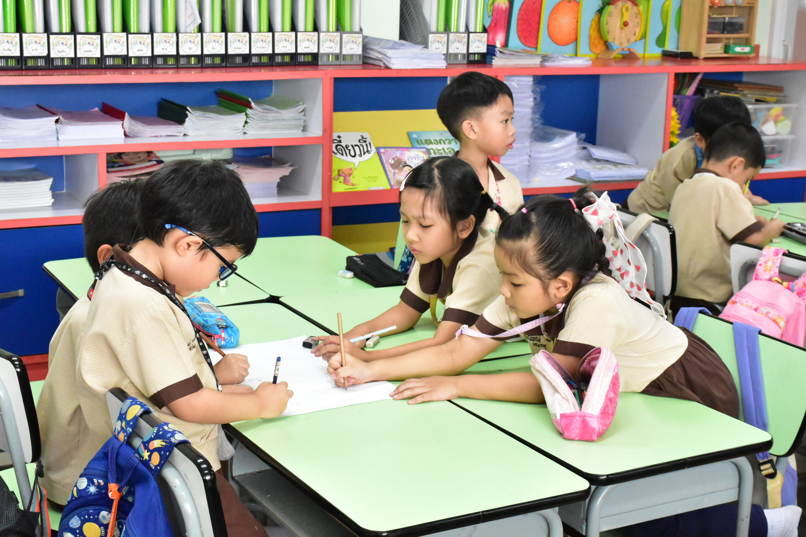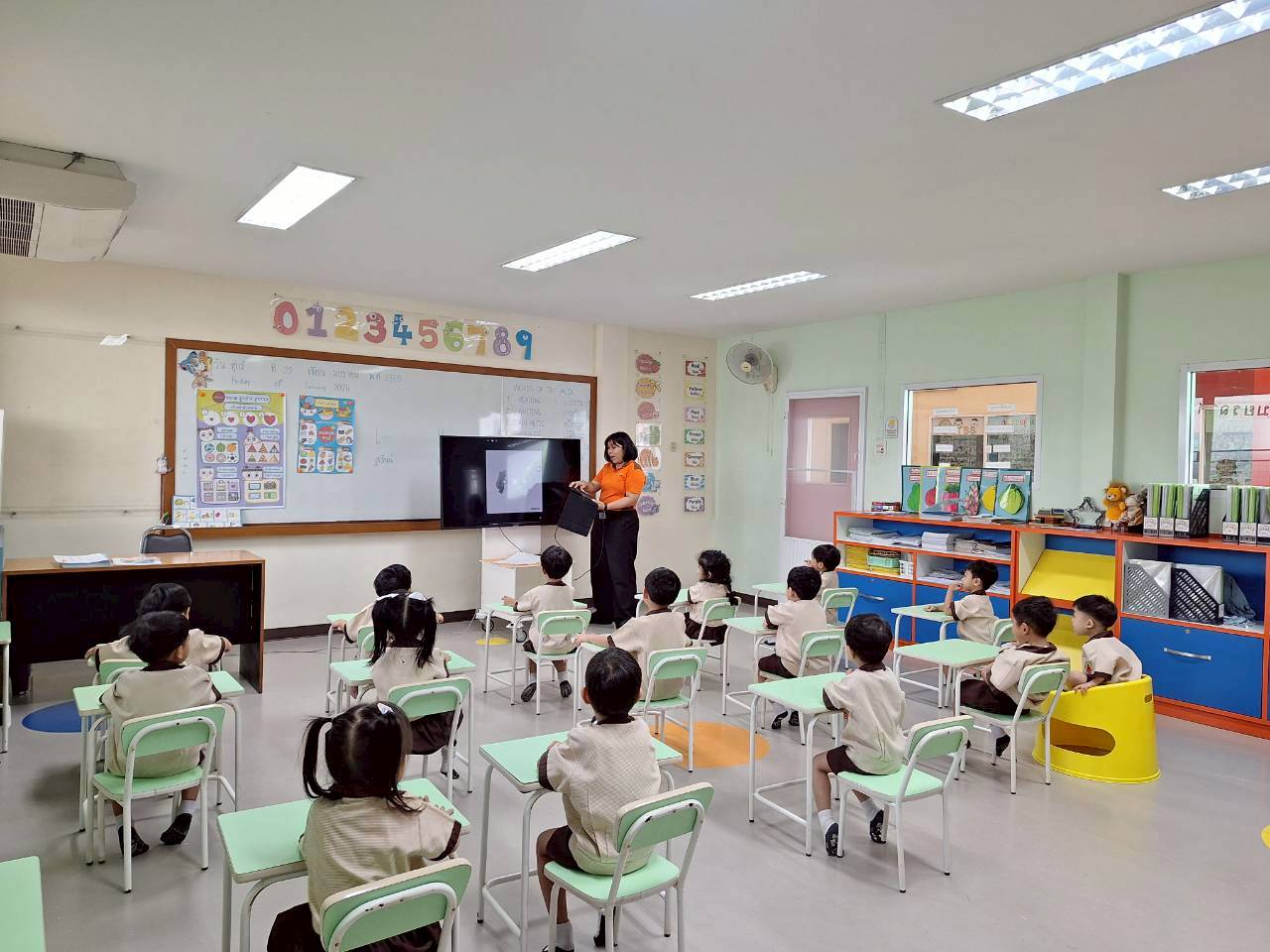 • ห้องใช้สีที่กระตุ้นพัฒนาการทางการเรียน พร้อมด้วยสื่อ สารคดี และอุปกรณ์การเรียนการสอนที่ทันสมัย