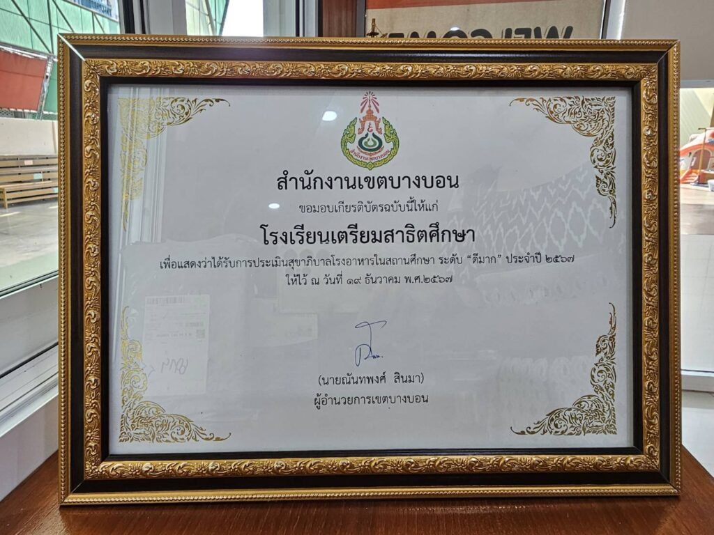 2567 รางวัลระดับดีมาก ในการตรวจประเมินสุขาภิบาลอาหารในโรงเรียน ตามโครงการกรุงเทพฯ เมืองอาหารปลอดภัย